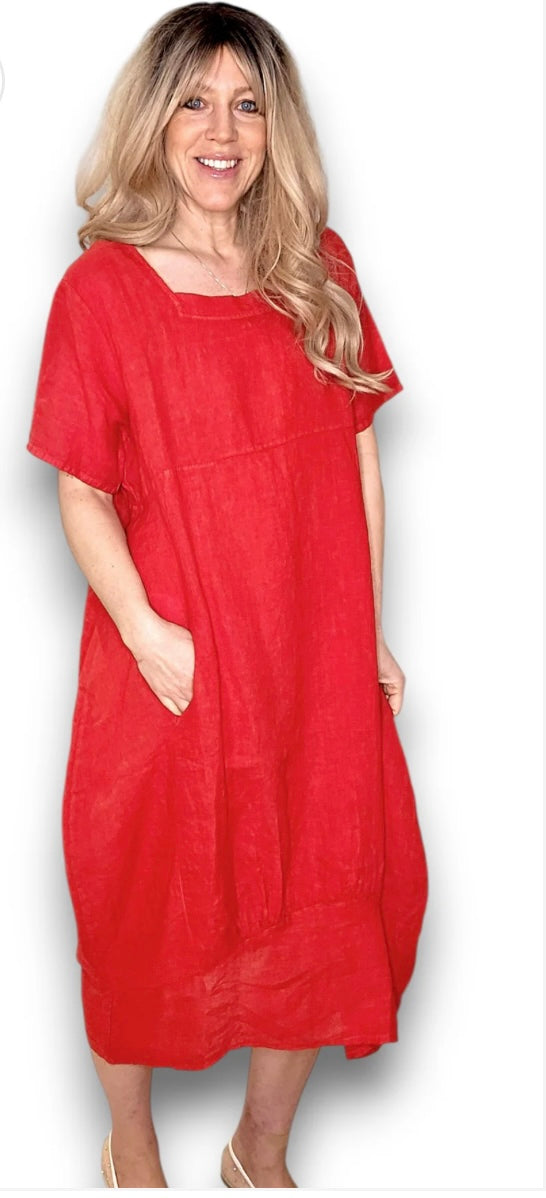 Helga May red plain mid sleeve maxi dress