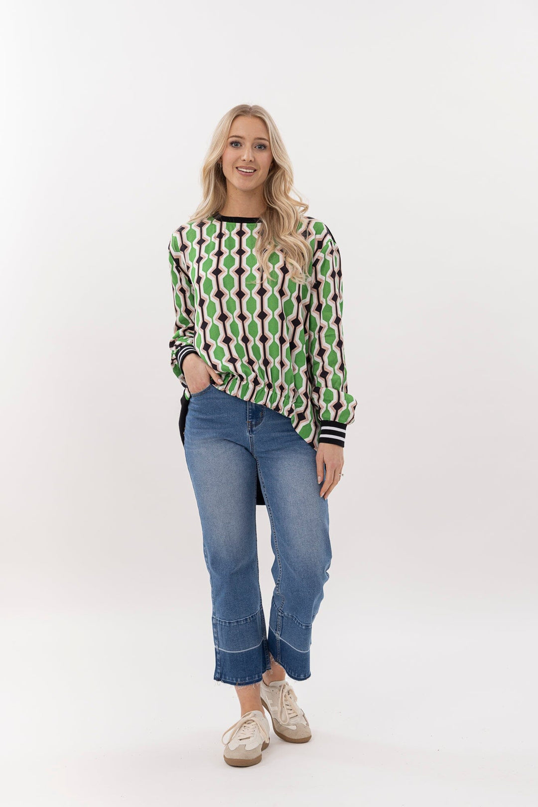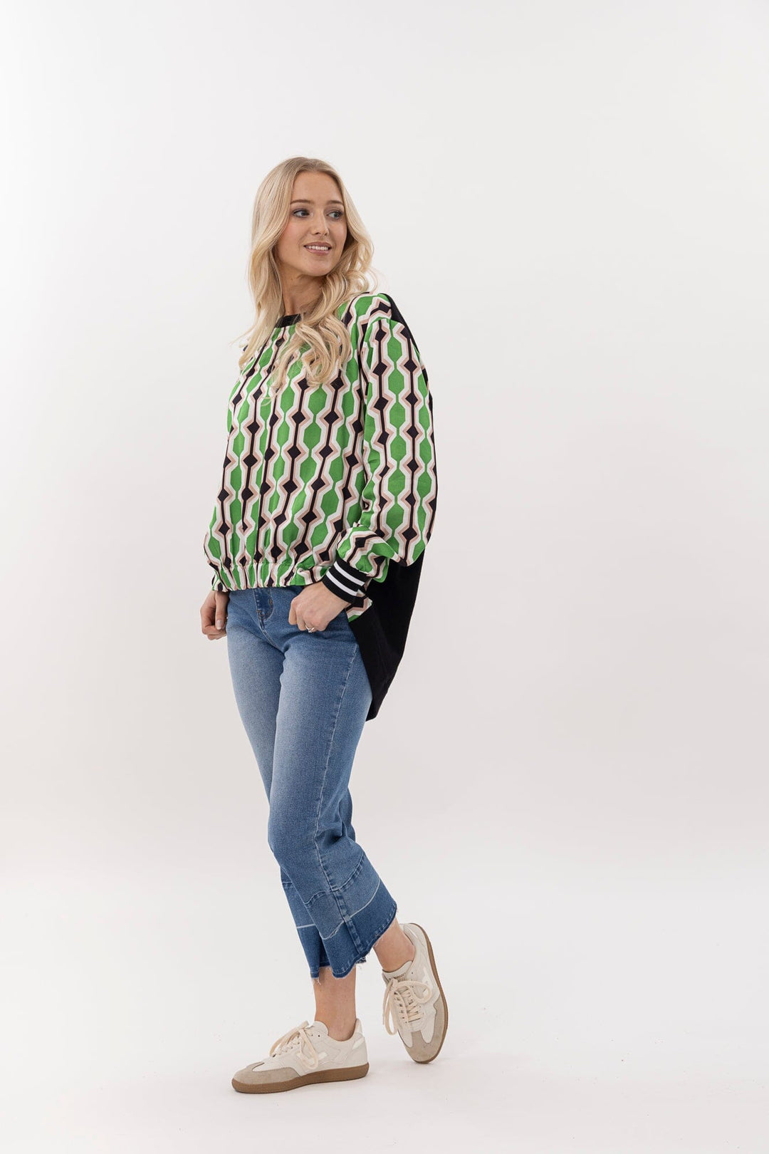 Elevate your wardrobe with the chic and versatile Neve Top from Mi Moso. Designed for effortless style, this top features a bold geometric pattern on the front, contrasted with a sleek black back panel for a modern and flattering silhouette. The lightweight fabric ensures comfort and ease of movement, making it perfect for both casual outings and dressed-up occasions.