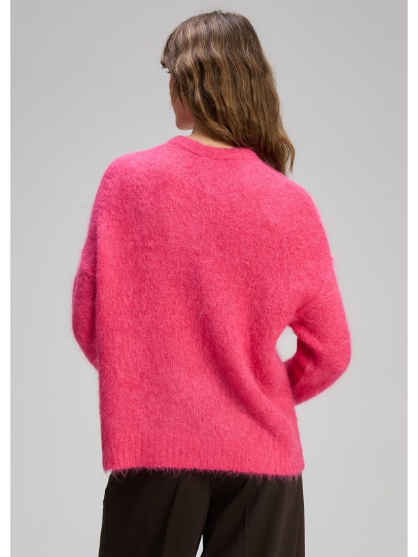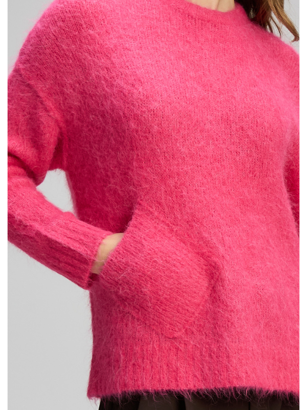 Crafted from a luxurious alpaca blend, it offers a gentle, breathable warmth and a refined drape. The relaxed silhouette sits comfortably on the body, making it easy to wear on its own or layered under coats and jackets. It’s a timeless knit that feels both cosy and polished.