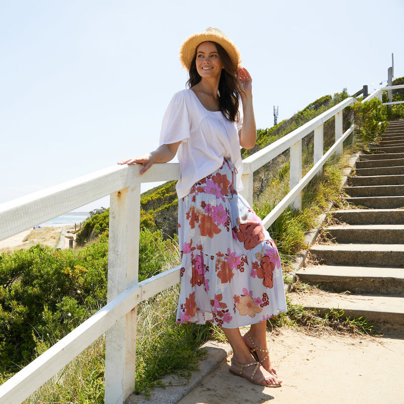 We hope you love this print as much as we do. Featuring an easy to wear elasticated wiastband with self fabric tie. And it even has pockets